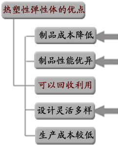 | 熱塑性彈性體可塑性加工賦予制品設計靈活方便,熱塑性彈性體的可著色、可粘接更使制品豐富多彩。 | | |